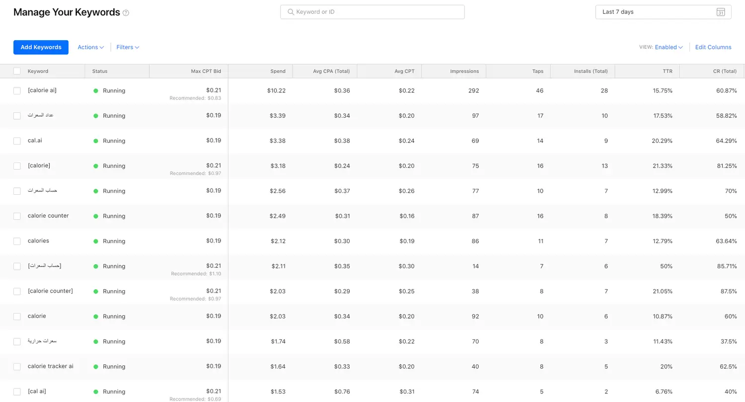 Our app syncs seamlessly with Apple Search Ads and RevenueCat.